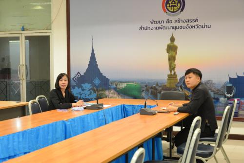 ในการนี้นายสุทธิรักษ์ ศรีสุเลิศ พัฒนาการจังหวัดน่าน มอบหมายให้นางสาวสุจิตรา สุวรรณโรจน์ ผอ.กลุ่มงานสารสนเทศการพัฒนาชุมชน พร้อมด้วยนักวิชาการพัฒนาชุมชน เข้าร่วมการประชุมผ่านระบบวีดีทัศน์ทางไกล (Video Conference) ณ ห้องประชุมสำนักงานพัฒนาชุมชนจังหวัดน่าน ชั้น 4 ศาลากลางจังหวัดน่าน และนักวิชาการพัฒนาชุมชนผู้รับผิดชอบงานข้อมูลความจำเป็นพื้นฐานระดับอำเภอ รับฟังการประชุมผ่าน ทีวี พช. ณ สำนักงานพัฒนาชุมชนอำเภอ