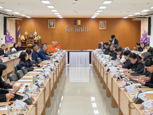 วันที่ 12 ธันวาคม 2568 เวลา 09.30 น. นางวิไลวรรณ บุดาสา เป็นประธานประชุมคณะกรรมการจัดงานเทศกาลเคาท์ดาวน์นันทบุรี 2569 ครั้งที่ 5/2568 ณ ห้องประชุมพระเจ้าสุริยพงษ์ผริตเดช ชั้น 3 ศาลากลางจังหวัดน่าน เพื่อติดตามความคืบหน้าและเร่งรัดการดำเนินงานในด้านต่าง ๆ เพื่อเตรียมความพร้อมสำหรับการจัดเทศกาลเฉลิมฉลองส่งท้ายปีเก่าต้อนรับปีใหม่ 2569 ที่กำลังจะมาถึง โดยมีส่วนราชการและหน่วยงานที่เกี่ยวข้อง ร่วมกันพิจารณาและติดตามผลการดำเนินงานในประเด็นสำคัญต่าง ๆ อาทิ ด้านการจัดงาน นิทรรศการ และการแสดง, ด้านพิธีการและพิธีทางศาสนา, ด้านสถานที่และสาธารณูปโภค, ด้านการรักษาความสงบเรียบร้อยและการจราจร, ด้านการรักษาพยาบาลและสาธารณสุข และด้านการประชาสัมพันธ์ เพื่อให้มั่นใจว่าทุกฝ่ายจะสามารถดำเนินงานได้อย่างราบรื่นและมีประสิทธิภาพตามแผนงานที่วางไว้ โดยในที่ประชุม นายสุทธรักษ์ ศรีสุเลิศ พัฒนาการจังหวัดน่าน ได้มอบหมายให้นางณัฐนรี ศรีชัยยะ ผู้อำนวยการกลุ่มงานส่งเสริมการพัฒนาชุมชน เข้าร่วมเพื่อนำเสนอข้อมูลและข้อเสนอแนะที่เกี่ยวข้อง