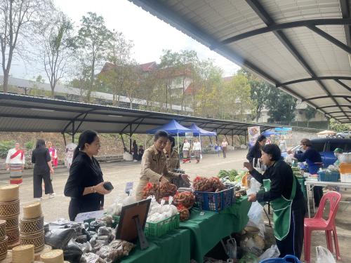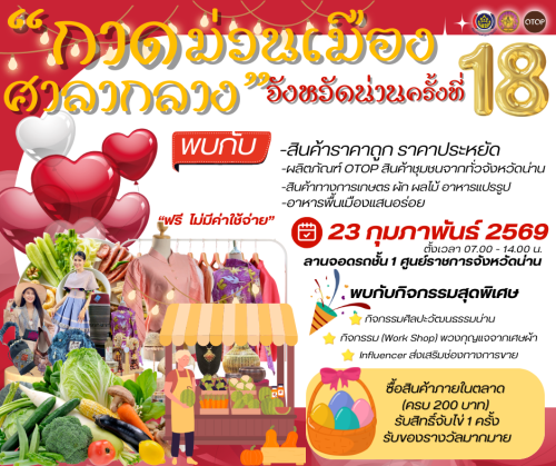 วันที่ 23 กุมภาพันธ์ 2569 นางสาวณัฐยาน์ ทวีวงค์ รองผู้ว่าราชการจังหวัดน่าน เยี่ยมชมและให้กำลังใจผู้ประกอบการที่ร่วมจำหน่ายสินค้าในงานกาดม่วงเมืองศาลากลาง ครั้งที่ 18 โดยมีนายสุทธิรักษ์ ศรีสุเลิศ พัฒนาจังหวัดน่าน พร้อมด้วยเจ้าหน้าที่พัฒนาชุมชนร่วมต้อนรับ และเยี่ยมชมบรรยากาศการจัดงาน โดยมีการจำหน่ายสินค้าราคาถูก ราคาประหยัด ผลิตภัณฑ์ชุมชน OTOP จากทั่วจังหวัดน่าน สินค้าทางการเกษตร ผัก ผลไม้ อาหารแปรรูป อาหารพื้นเมือง นอกจากนี้ยังมีกิจกรรมพิเศษ การแสดงศิลปะวัฒนธรรม กิจกรรม Work shop การทำพวงกุญแจจากเศษผ้า และการไลฟ์สดเพื่อส่งเสริมช่องทางการตลาด