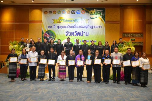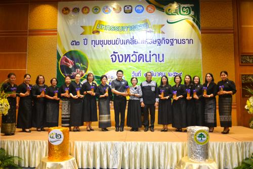 ในโอกาสนี้ นายชัยนรงค์ วงศ์ใหญ่ ผู้ว่าราชการจังหวัดน่าน ได้ให้เกียรติมอบเกียรติบัตรประกาศเกียรติคุณให้แก่กลุ่มออมทรัพย์เพื่อการผลิตและสมาชิกที่มีผลการดำเนินงานดีเด่น เพื่อเป็นขวัญและกำลังใจในการเป็นต้นแบบที่ดีด้านการบริหารจัดการการเงินชุมชน