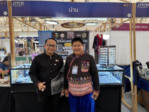 ในการนี้นายสุทธิรักษ์ ศรีสุเลิศ พัฒนาการจังหวัดน่าน พร้อมด้วยเจ้าหน้าที่พัฒนาชุมชน เข้าร่วมพิธีเปิด และเยี่ยมชมให้กำลังใจผู้ประกอบการของจังหวัดน่านที่เข้าร่วมจัดแสดงผลงานและจำหน่ายสินค้า เพื่อแลกเปลี่ยนเรียนรู้และขยายตลาดในระดับภูมิภาค อาทิ เฮียเม้งนครน่านเครื่องเงิน จากอำเภอเมืองน่าน ซึ่งโดดเด่นด้วยงานหัตถศิลป์เครื่องเงินอันวิจิตร และ ลายน่าน (โดยคุณศิริวรรณ ตนะทิพย์) จากอำเภอนาหมื่น ที่นำเสนอผลิตภัณฑ์ผ้าทออันเป็นเอกลักษณ์ ซึ่งได้รับความสนใจจากผู้เข้าชมงานเป็นอย่างมาก
