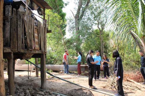 สำหรับการลงพื้นที่ในครั้งนี้ คณะทำงานได้ติดตามการก่อสร้างบ้านของครัวเรือนเป้าหมายในตำบลสถาน ซึ่งเดิมสภาพที่พักอาศัยมีความทรุดโทรมอย่างมาก โดยฝาบ้านทำจากไม้ไผ่สาน เสาบ้านขาดความแข็งแรงเชิงโครงสร้าง ไม่มีหน้าต่างเพื่อการระบายอากาศ และหลังคาสังกะสีอยู่ในสภาพเก่าผุพัง ประกอบกับทางครอบครัวมีรายได้ไม่เพียงพอต่อการซ่อมแซมด้วยตนเอง การได้รับสนับสนุนงบประมาณในโครงการนี้จึงถือเป็นการพลิกฟื้นคุณภาพชีวิตให้แก่สมาชิกในครัวเรือนอย่างเป็นรูปธรรม