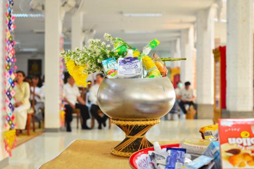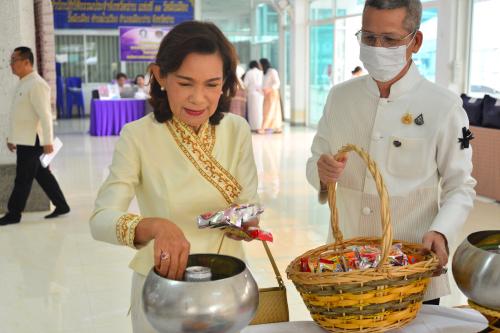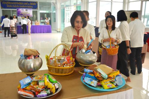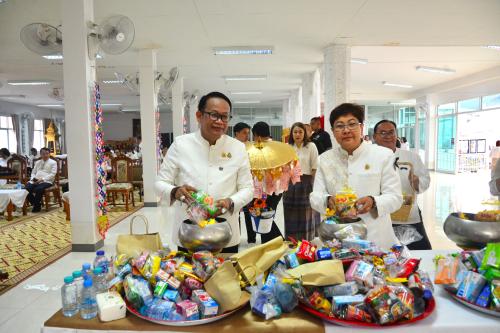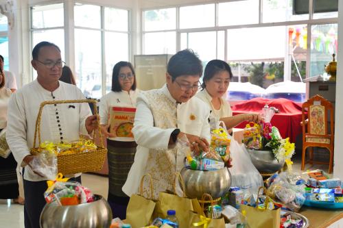 สำหรับบรรยากาศภายในงานเป็นไปอย่างอิ่มเอมใจ พุทธศาสนิกชนและข้าราชการทุกภาคส่วนต่างนำข้าวสาร อาหารแห้ง และเครื่องอุปโภคบริโภคที่จำเป็นมาร่วมทำบุญ ซึ่งสิ่งของทั้งหมดจะถูกรวบรวมและจัดสรรโดยสำนักงานพัฒนาชุมชนจังหวัดน่าน เพื่อกระจายไปยังพื้นที่เป้าหมายตามฐานข้อมูลการพัฒนาคนแบบชี้เป้า (TPMAP) และครัวเรือนที่ตกเกณฑ์ความยากจนในมิติต่างๆ เพื่อบรรเทาภาระค่าครองชีพและสร้างขวัญกำลังใจให้แก่พี่น้องประชาชน ซึ่งเป็นหัวใจสำคัญของการพัฒนาคนทุกช่วงวัยโดยไม่ทิ้งใครไว้ข้างหลัง”