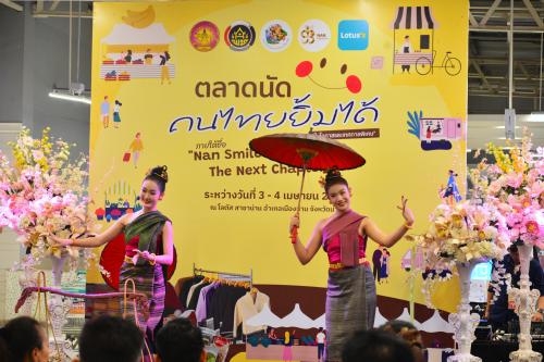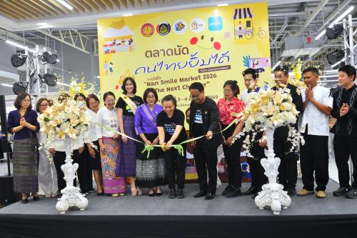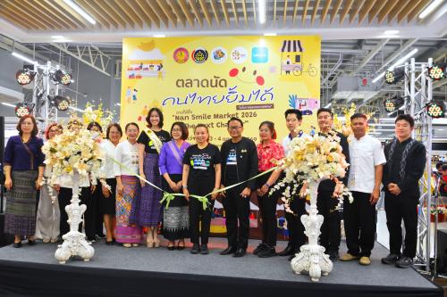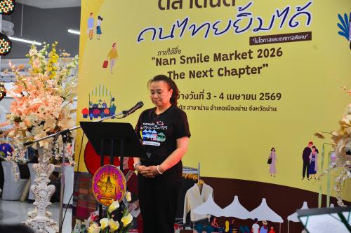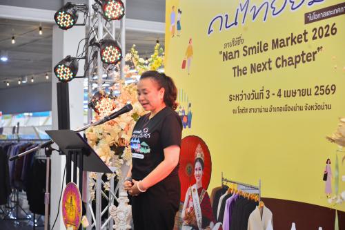 เมื่อวันศุกร์ที่ 3 เมษายน 2569 ณ บริเวณพื้นที่จัดกิจกรรม โลตัส สาขาน่าน อำเภอเมืองน่าน จังหวัดน่าน นางวิไลวรรณ บุดาสา รองผู้ว่าราชการจังหวัดน่าน เป็นประธานในพิธีเปิดกิจกรรมขยายรูปแบบตลาดนัดคนไทยยิ้มได้ในโอกาสและเทศกาลพิเศษ ภายใต้ชื่องาน “Nan Smile Market 2026 : The Next Chapter” โดยมี นายสุทธิรักษ์ ศรีสุเลิศ พัฒนาการจังหวัดน่าน พร้อมด้วยหัวหน้าส่วนราชการ ผู้อำนวยการกลุ่มงาน พัฒนาการอำเภอ เจ้าหน้าที่พัฒนาชุมชน และประชาชนชาวน่านเข้าร่วมงานอย่างคึกคัก เพื่อมุ่งเน้นการส่งเสริมเศรษฐกิจฐานรากและยกระดับขีดความสามารถทางการแข่งขันให้แก่ผู้ประกอบการในพื้นที่
